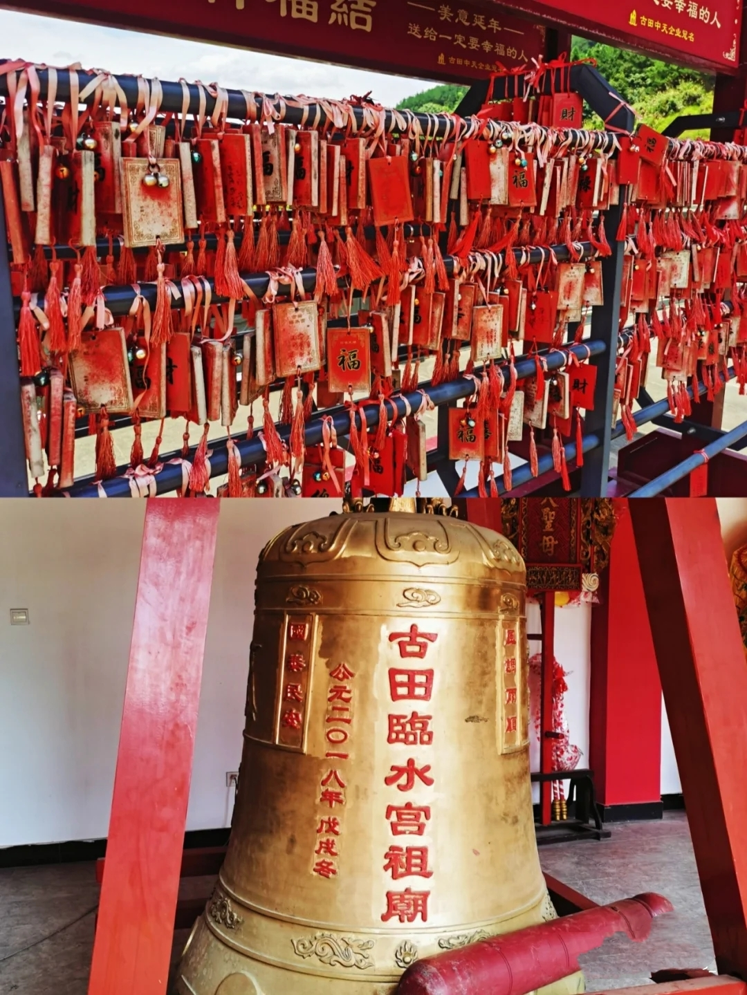 【临水宫祖庙】玉帝封她为“临水夫人”,令其专管人间生育。因此民间称呼她为临水娘娘,是中国最出名的妇女儿童保护神。众所周知,海上保护神——妈祖,古田有陆地妇幼保护神——陈靖姑,相传,临水夫人学成下山之时,因感念师傅恩情,在拜别师傅后走了二十四步又回头,古有“辞步隐岁寿”的说法,许真人算出夫人二十四岁将有劫难,叮嘱她双轮年间勿施法术,如有危难,可咬指抛血,以解厄矣。恰逢夫人二十四岁,天下大旱,白蛇祸害人间,夫人不顾有孕在身,施法祈雨,斩白蛇,最终产难而逝。因而在修建临水宫祖庙时,邑人将十八和二十四两个数字融入台阶数,以示感恩夫人,一步一念。