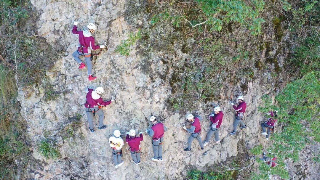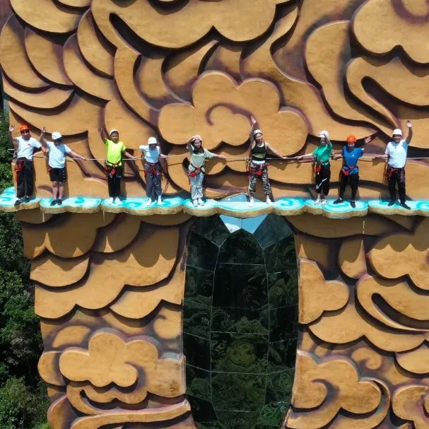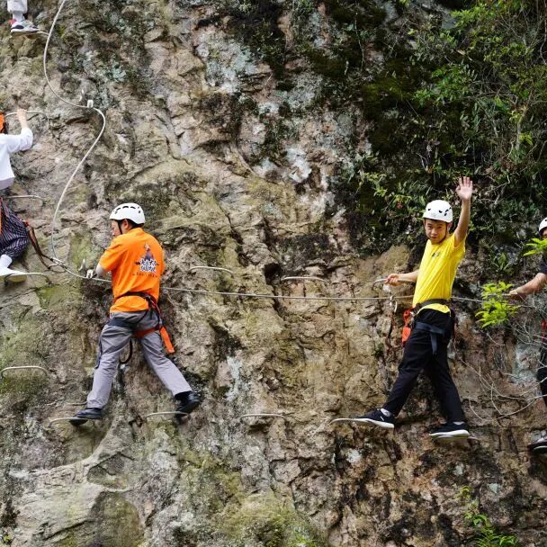 Via Ferrata,音译为“飞拉达”,即崖壁攀岩;是通过在山体岩壁,上建设由钢扶手、脚踏、生命钢缆等构成攀登径道。峭壁攀岩,高台速降,挑战自我,因此,飞拉达也成为了极限爱好者的热门打卡点。