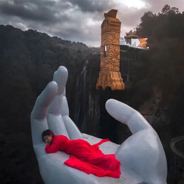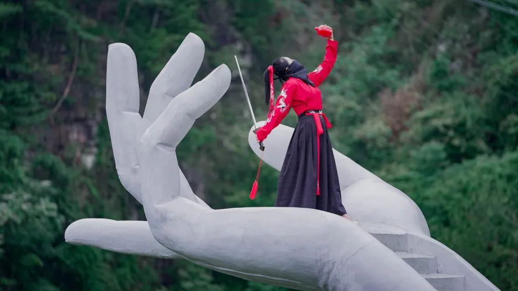 问道拈花佛手,通天福手,是新晋网红打卡点;与宝剑电梯遥遥相对,相辅相成。以天为幕,青山环绕,一秒入画。立于之上,清风拂面,见证江湖百年。